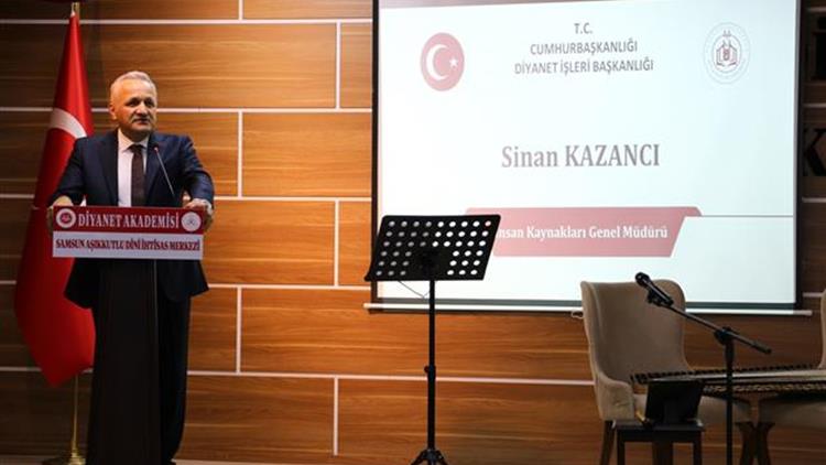 Dini İhtisas Merkezi konferans salonunda düzenlenen mezuniyet programı, Diyanet İşleri Başkanlığı İnsan Kaynakları Genel Müdürü Sinan KAZANCI, Samsun İl Müftüsü Seyfullah ÇAKIR, OMÜ İlahiyat Fakültesi Dekan Yardımcısı Doç. Dr. Bekir ÖZÜDOĞRU, Müftü Yardımcıları, İlçe Müftüleri, Eğitim Görevlileri ve Personelimizin katılımıyla gerçekleştirildi. Aday Din Görevleri Mezuniyet Programı Aziz Şehitlerimiz anısına saygı duruşu ve İstiklal Marşı ile başladı. Program III. Dönem Kursiyerlerimizden Halil İbrahim İÇTEN’in Kur’an-ı Kerim tilavetinin akabinde Dini İhtisas Merkezi Müdürü Yakup PULAT’ın açış, Samsun İl Müftüsü Seyfullah ÇAKIR’ın ise selamlama konuşması ile devam etti. Mezuniyet programına konuşmacı olarak katılan Diyanet İşleri Başkanlığı İnsan Kaynakları Genel Müdürü Sinan KAZANCI, Aday Din Görevlilerine nasihatlerde bulunarak atanacakları bu kutlu görevin öneminden bahsetti. Eğitim Görevlisi Hasan ÇATLIOĞLU’nun önderliğinde, Aday Din Görevlilerimizden oluşan Dini Musiki Korosunun seslendirdiği ilahilerle devam eden program dönem birincisi Semihcan SÖNMEZ’in konuşması ve Aday Din Görevlisi Muhammet ASLAN’ın duasıyla sona erdi.